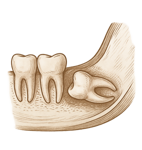 20 yaş dişleri (akıl dişleri), genellikle çene yapısında yeterli alan olmadığında gömülü kalır veya yarı sürmüş pozisyonda problem oluşturabilir.
